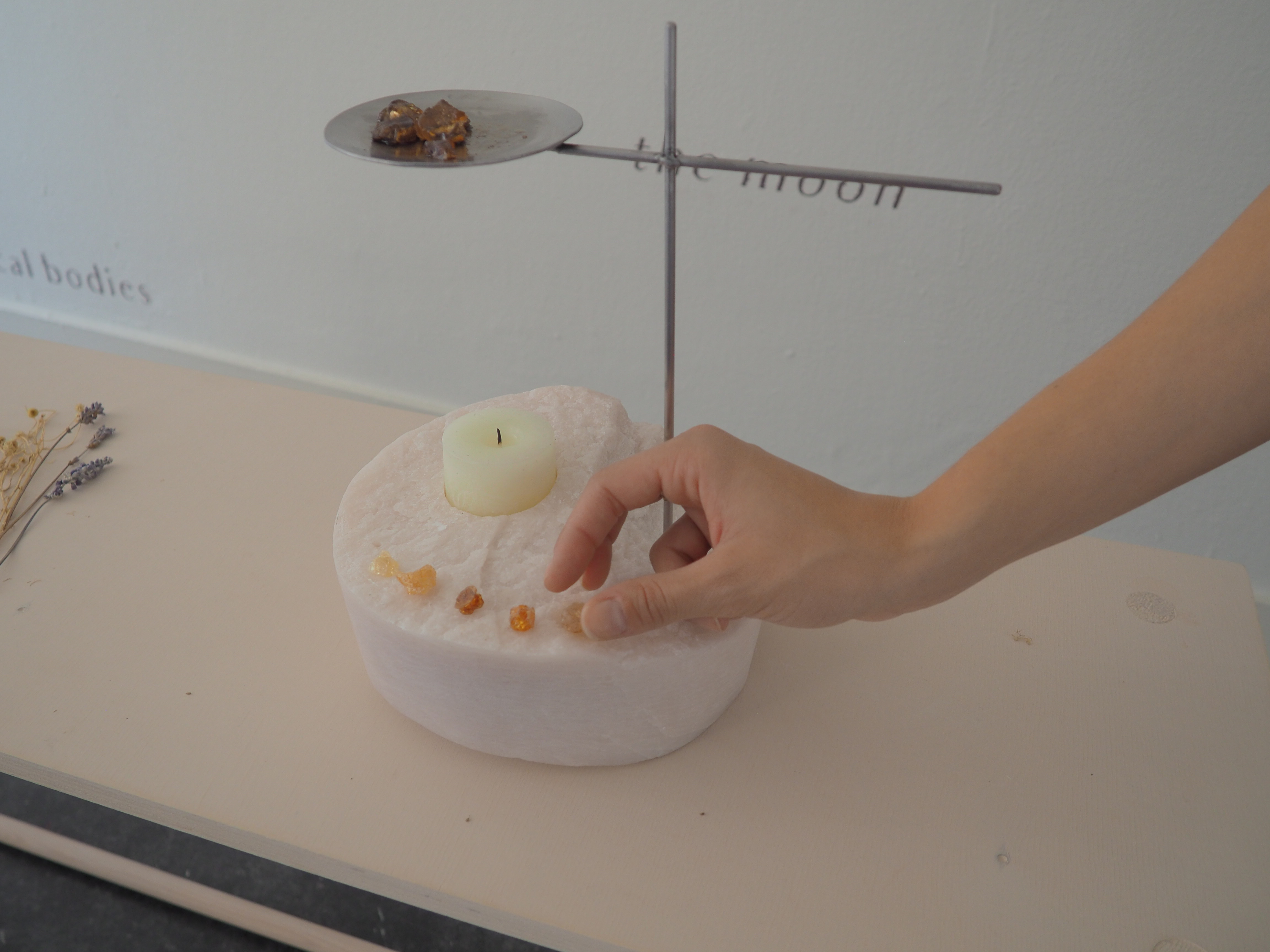 Final Master design research project, Inner Weather addresses the linear time system. I wonder about an embodied, personal sense of time that constantly shifts according to outer factors in the environments, and can't be limited to the number-based, invented tradition of timekeeping. I welcome the alternative examples, like the moon and its phases, that presumably influnece the human body cycles, the same way as the other living organisms. And wonder how we can communicate time in new ways. A project was an atmospheric environment in which visitors could watch and listen to stories of 3 women who follow the moon cycles, and could interact with a sensory calendar.